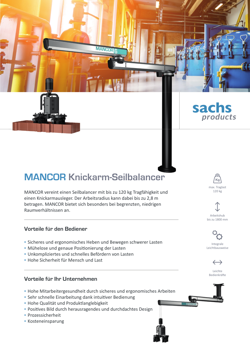✓ Lasten bis zu 60 kg werden pneumatisch zur leichten und stufenlosen Handhabung in einen Schwebezustand (Balance) versetzt